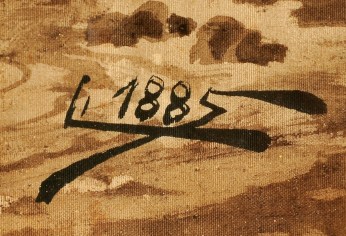 - trata-se provavelmente de uma pintura sobre seda destinada a um leque que não chegou a ser montado.◙◙REI D. CARLOS - 1863-1908,◙"Marine - Boats along the coast",◙oil on silk, signed and dated 1885