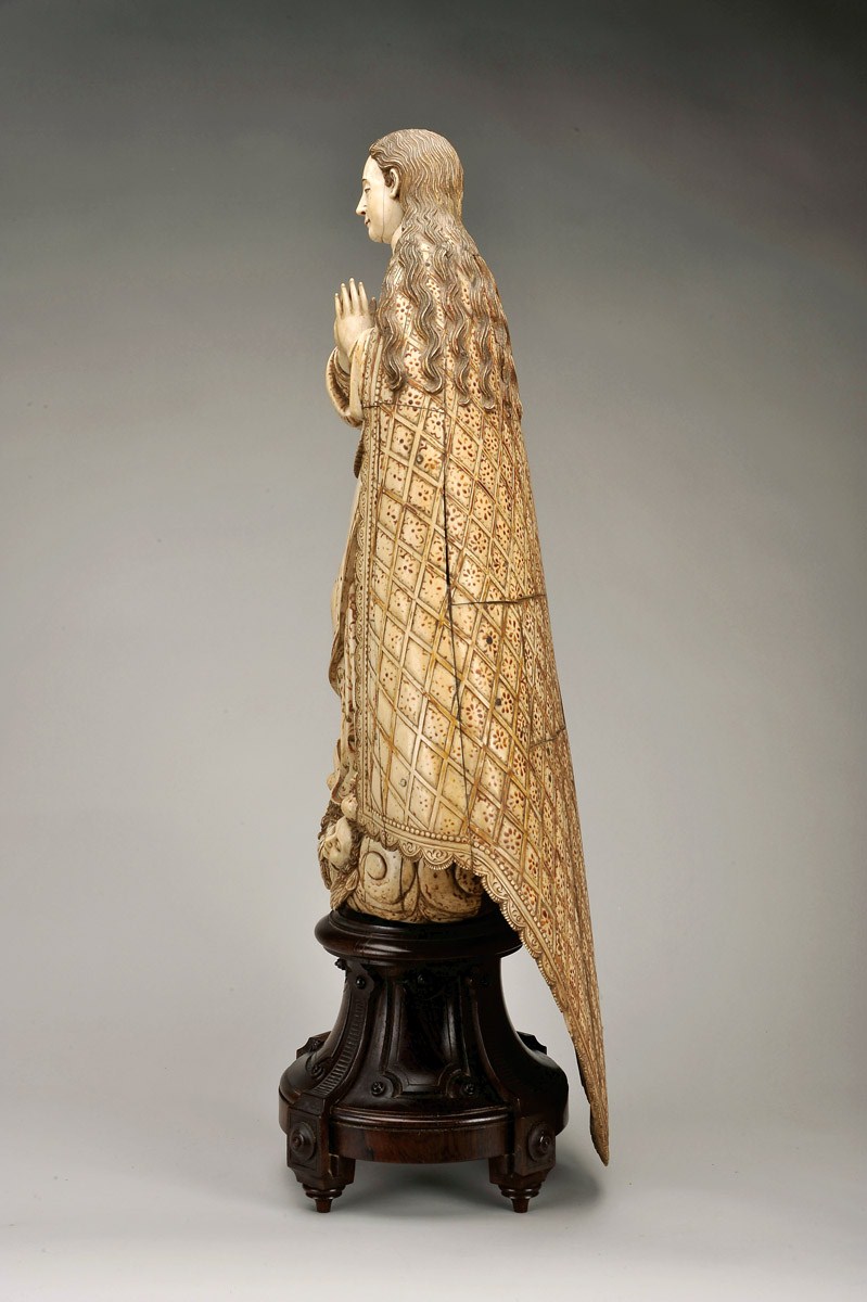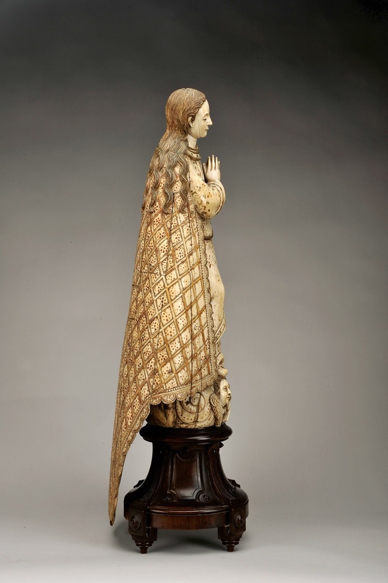 Notes: See similarities of details of the present sculpture - face, painting of the robes, Cherubs and Orb clouds in several Hispano-Philippine sculptures represented in PINTADO, Beatriz Sanchez Navarro de - "Marfiles Cristianos del Oriente en Mexico", Fomento Cultural Banamex, A. C., México, 1986; e MARCOS, Margarita Mercedes Estella - "Marfiles de las provincias ultramarinas orientales de España y Portugal", Monterrey, 1997.