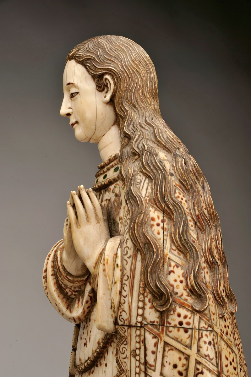 - escultura de grandes dimensões em marfim com dourados e policromia