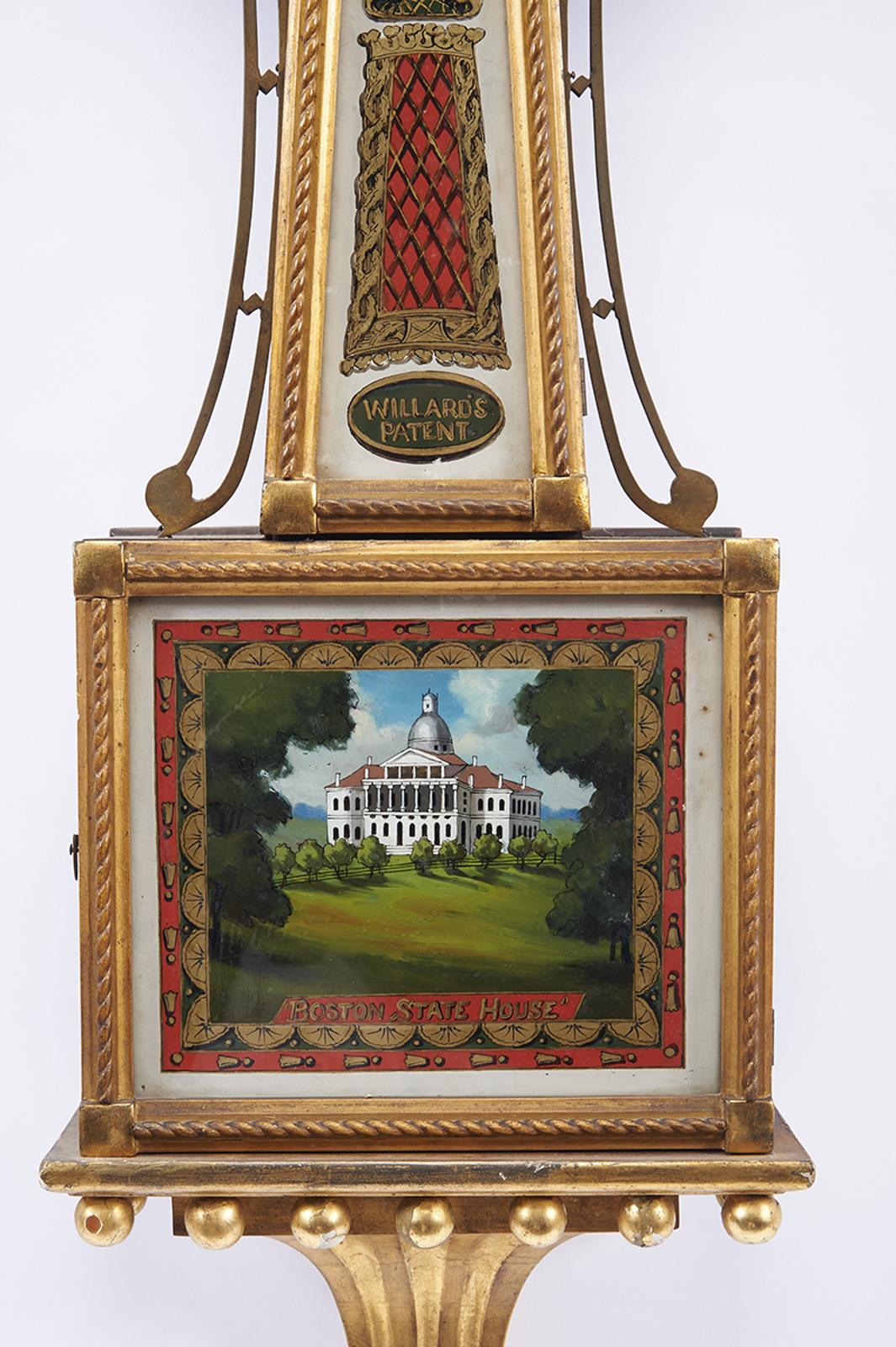 - relógio com autonomia de um dia, sistema «Willard's Patent», um peso, latão e vidro pintado "Câmara Municipal de Boston"