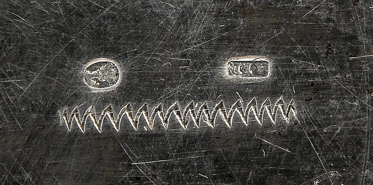 - decoração em frisos gravados, tampas encimadas por "Flores", composto por bule, cafeteira, açucareiro e leiteira, marca de ensaiador de Lisboa (1822-1843), marca de ourives de Ângelo José Rodrigues (1827-1843)