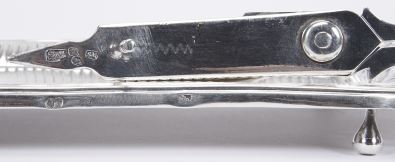 - marca de ensaiador do Porto (1810-1818), marca de ourives de António Pereira Soares (1783-1836), duplamente remarcadas com "Cabeça de Velho"