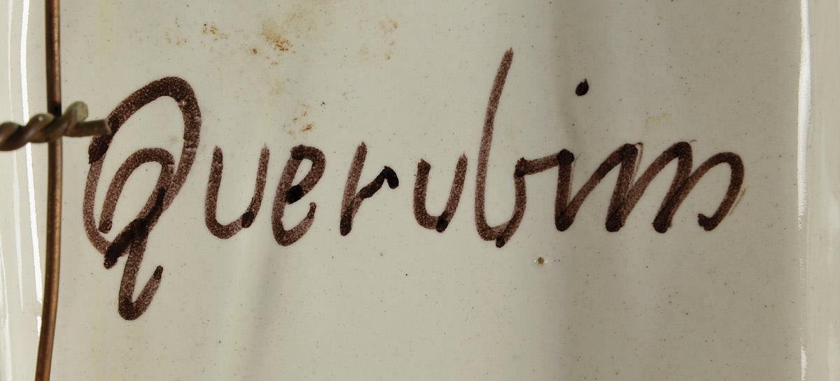 - placa de suspensão em cerâmica relevada e policromada
