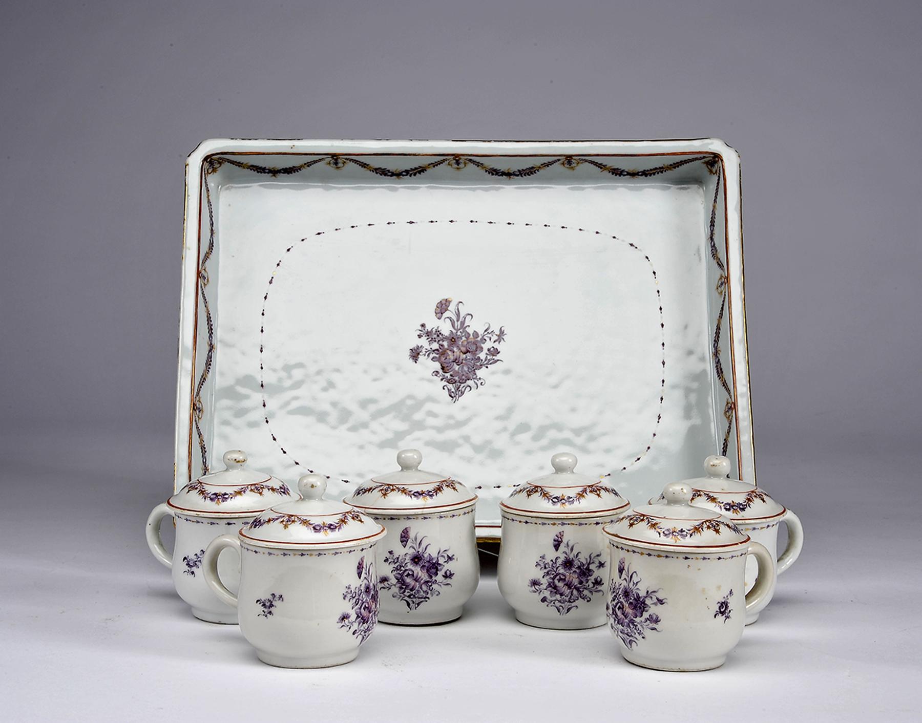 - decoração policromada «camaieu rose» e dourada "Flores e grinaldas"