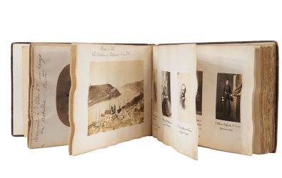 - Álbum contendo 54 folhas nas quais se encontram montadas 168 fotografias da Família Real, da Corte, do Governo, de Lisboa, do Porto e de diversas personagens da época, entre as quais alguns actores e actrizes de teatro, membros do clero, militares, figuras públicas, etc. As primeiras fotografias representam membros da Família Real, sendo que algumas datam seguramente do final da década de 1850 e início da de 1860. Seguem-se diversas fotografias de monumentos (Lisboa, Porto, Coimbra, Queluz e Sintra) e de membros da nobreza, pares do Reino, deputados, figuras do povo, cidadãos espanhóis, etc. Para além das fotografias, o álbum inclui ainda diversos recortes de jornais, dois anúncios de touradas (pagelas), dois menus do Grand Hotel Central, dois bilhetes de lotaria (de 7 de Fevereiro de 1867) e três bilhetes amorosos. Nenhum documento apresenta data posterior a 1867. Quatro páginas, próximas do final, incluem alguns autógrafos e um texto de agradecimento assinado Adelardo L[opez] de Ayala (dramaturgo e político espanhol ao tempo exilado em Lisboa): Improvisacion: A mi amigo Ferrero(?). Por este documento, e ainda pelo facto de a maioria das legendas serem manuscritas em castelhano, somos levados a crer que o álbum terá pertencido a uma família espanhola, residente em Lisboa (de apelido Ferrero?), provavelmente com ligações ao teatro.