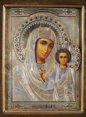 - pintura sobre madeira, «oklade» em prata gravada de 833/1000
