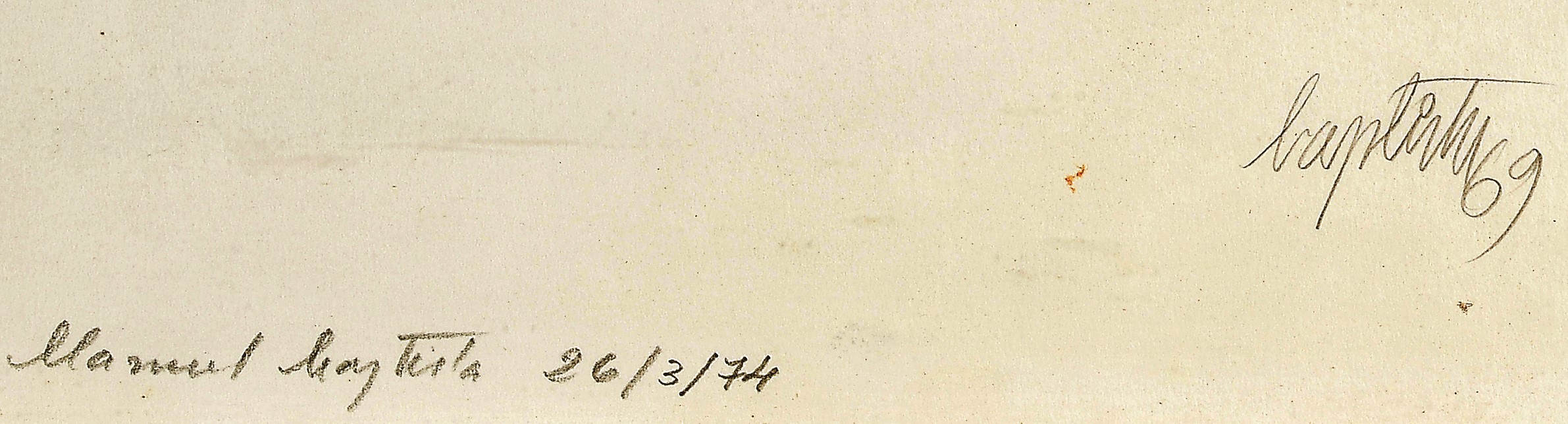 assinada e datada de 1969, dedicada de 26/03/1974