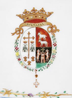 - decoração policromada e dourada com armas tradicionalmente atribuídas a Francisco António da Veiga Cabral da Câmara Pimentel (1734-1810), 1º Visconde de Mirandela - 2º serviço, aba encanastrada