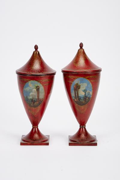 - decoração policromada e dourada com reservas "Paisagens com ruínas e figuras"