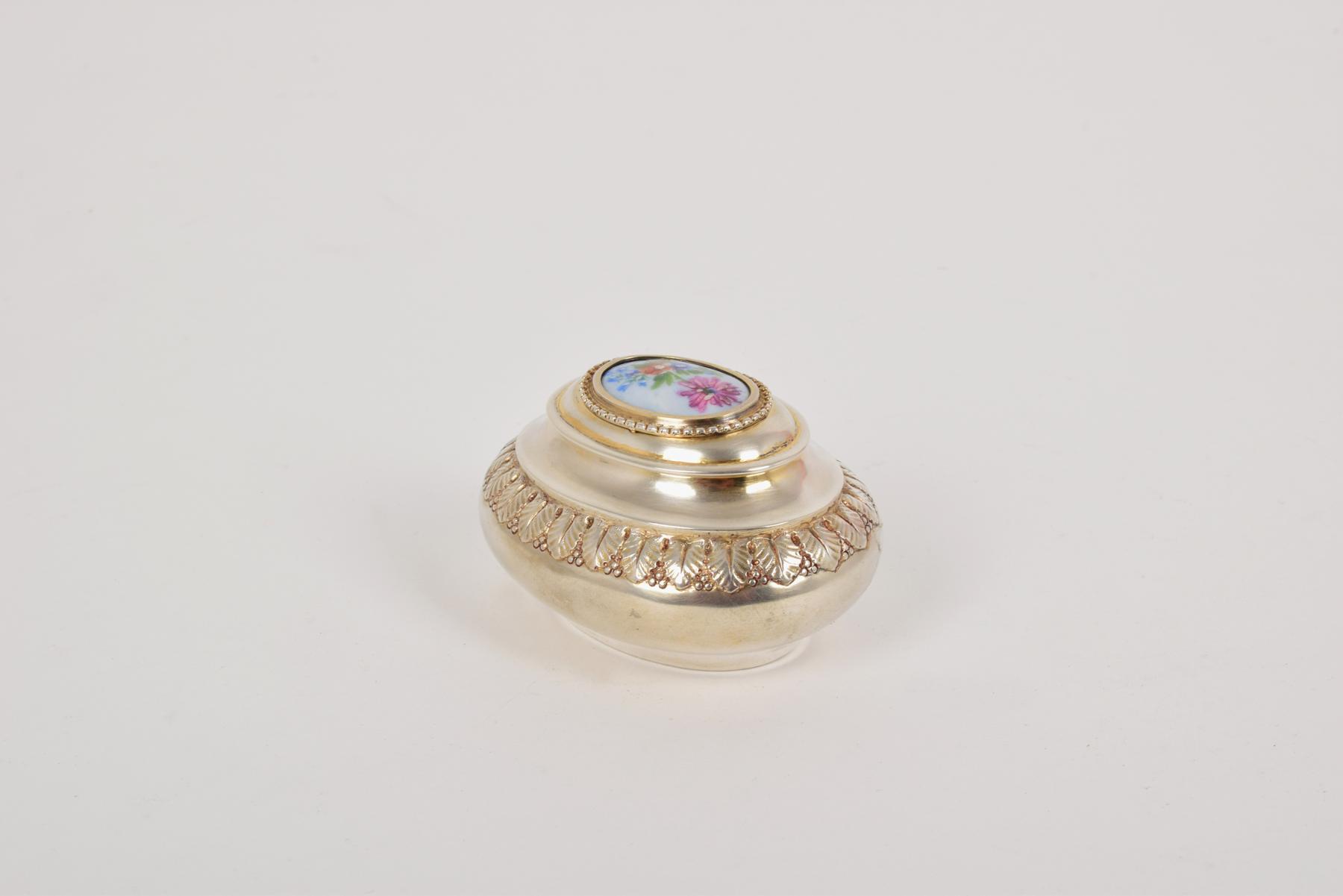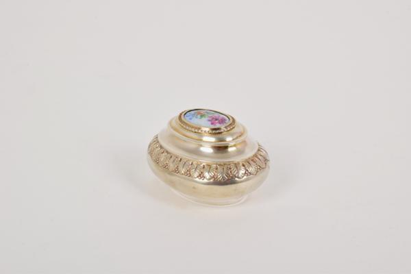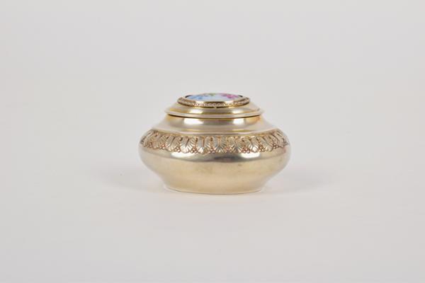 - tampa com placa em porcelana pintada "Flores", decoração relevada