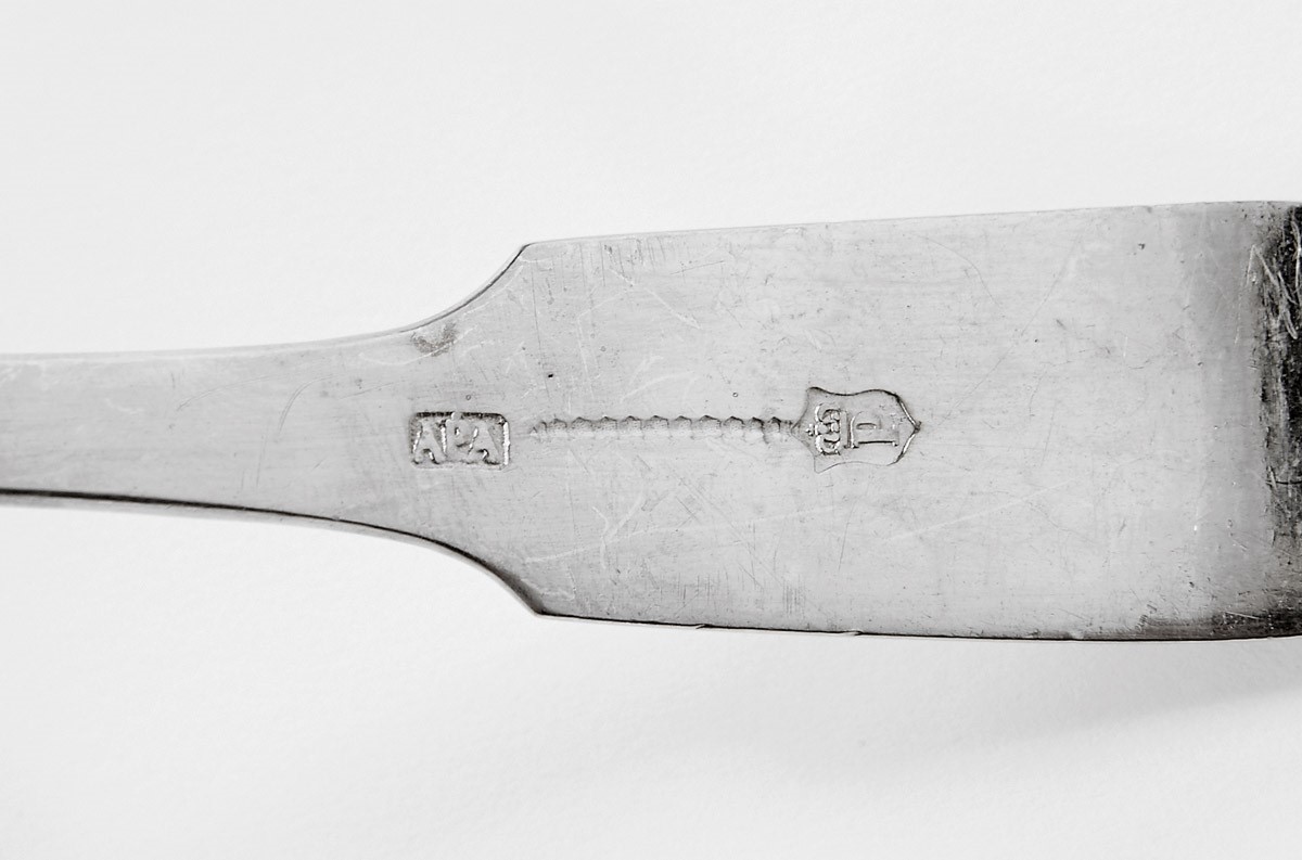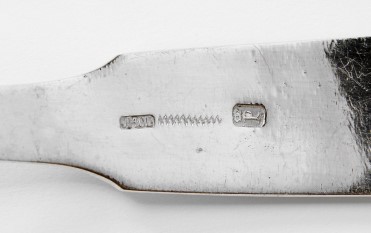 - decoração relevada "Concheados", composto por cinco talheres de servir, colheres de sopa, talheres de resto e colheres de chá, marcas de ensaiador do Porto, marca de ourives de António Pinto de Almeida (1783-1819); de IRP (1836-1867); de JHCL (1836-1867); de Manuel Lopes da Cunha (1853-1861) e de Luís António Rodrigues de Araújo (c.1853), com estojo original em mogno e raiz de mogno