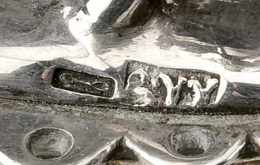 - marca de ourives do Porto de António Alves de Sousa (1893), remarcado com contraste Javali do Porto (1887-1937), marca de ourives de João de Oliveira e Costa (1887)