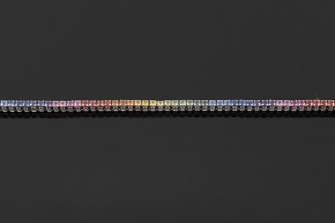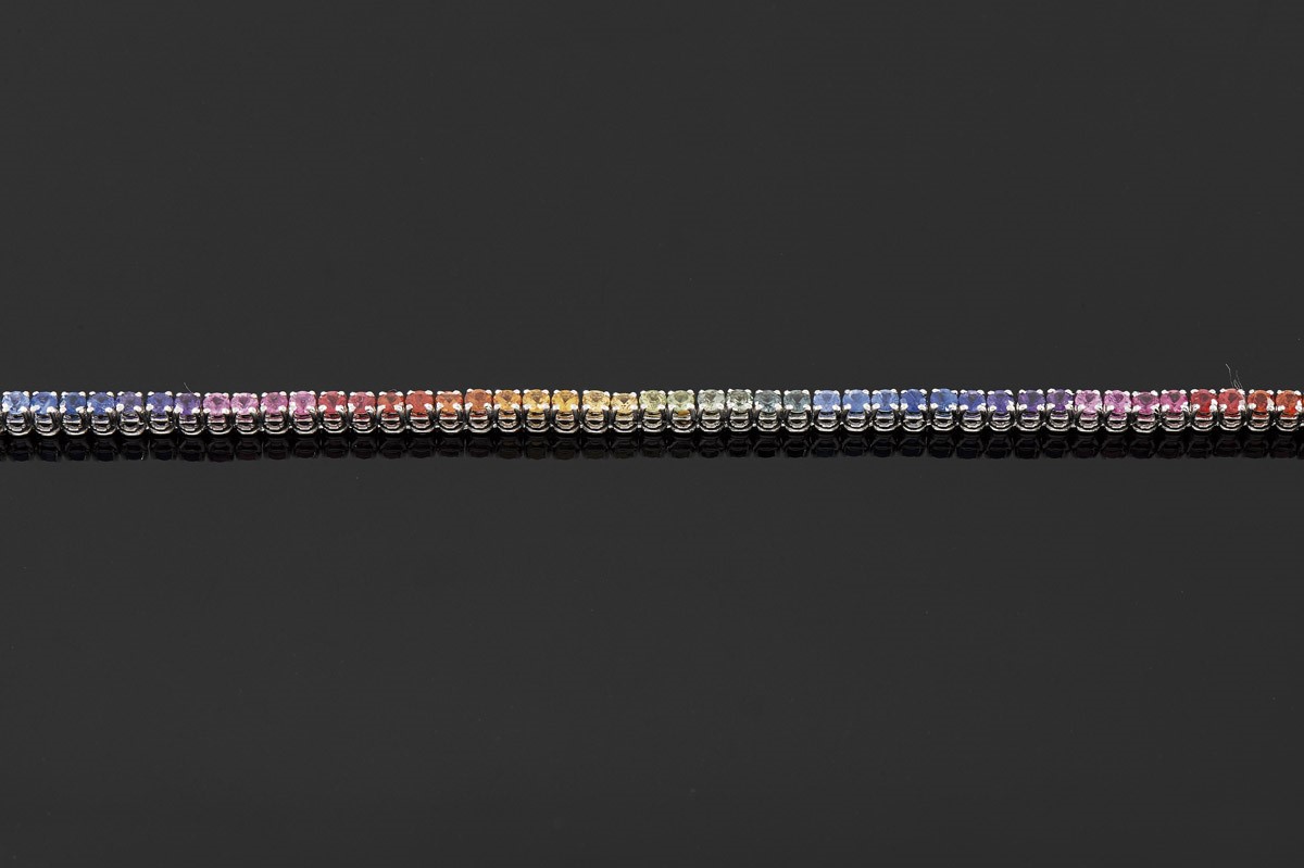 - cravejada com safiras «Rainbow» em degradée de tons com o peso aproximado de 7,25 ct.