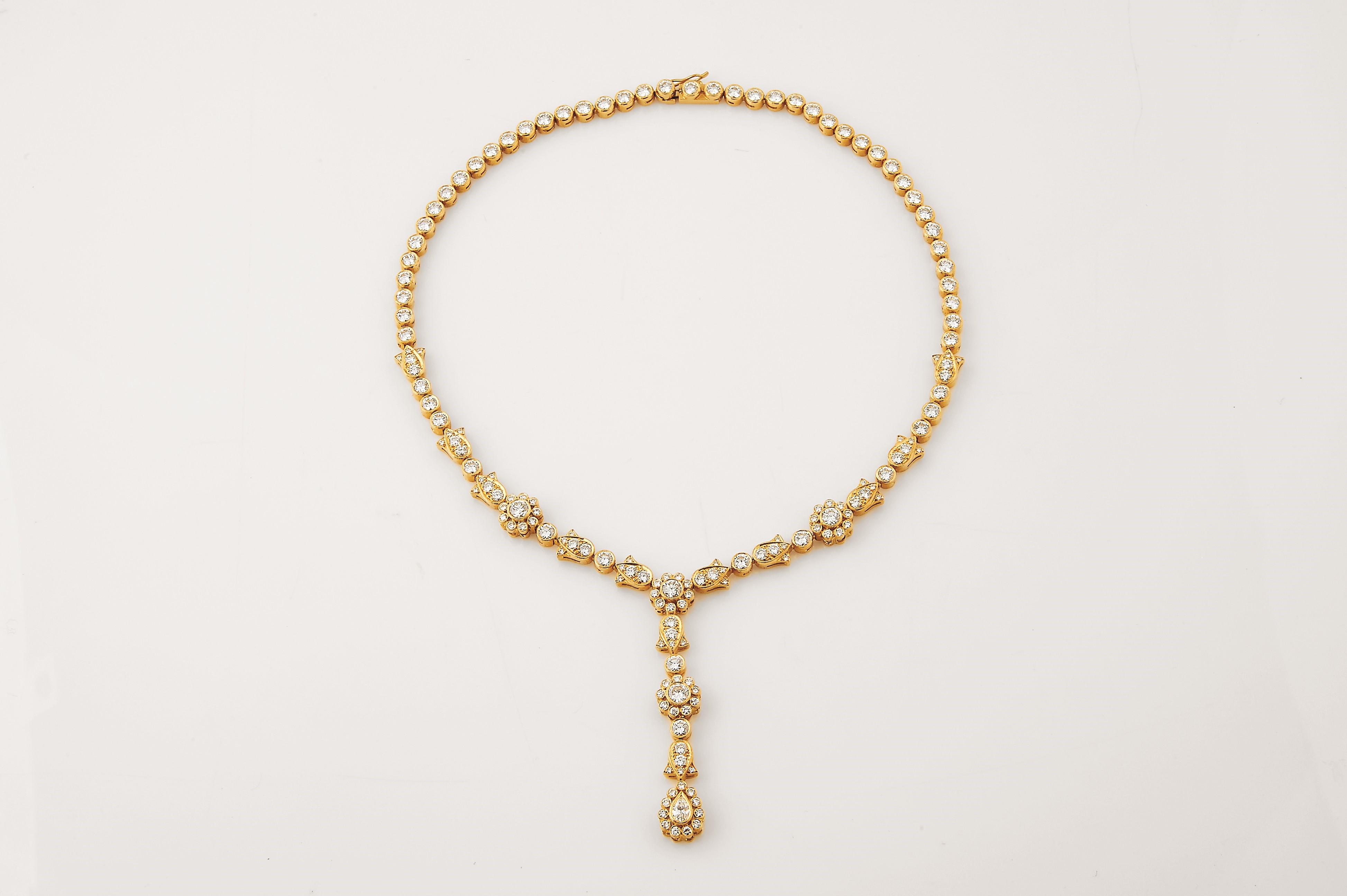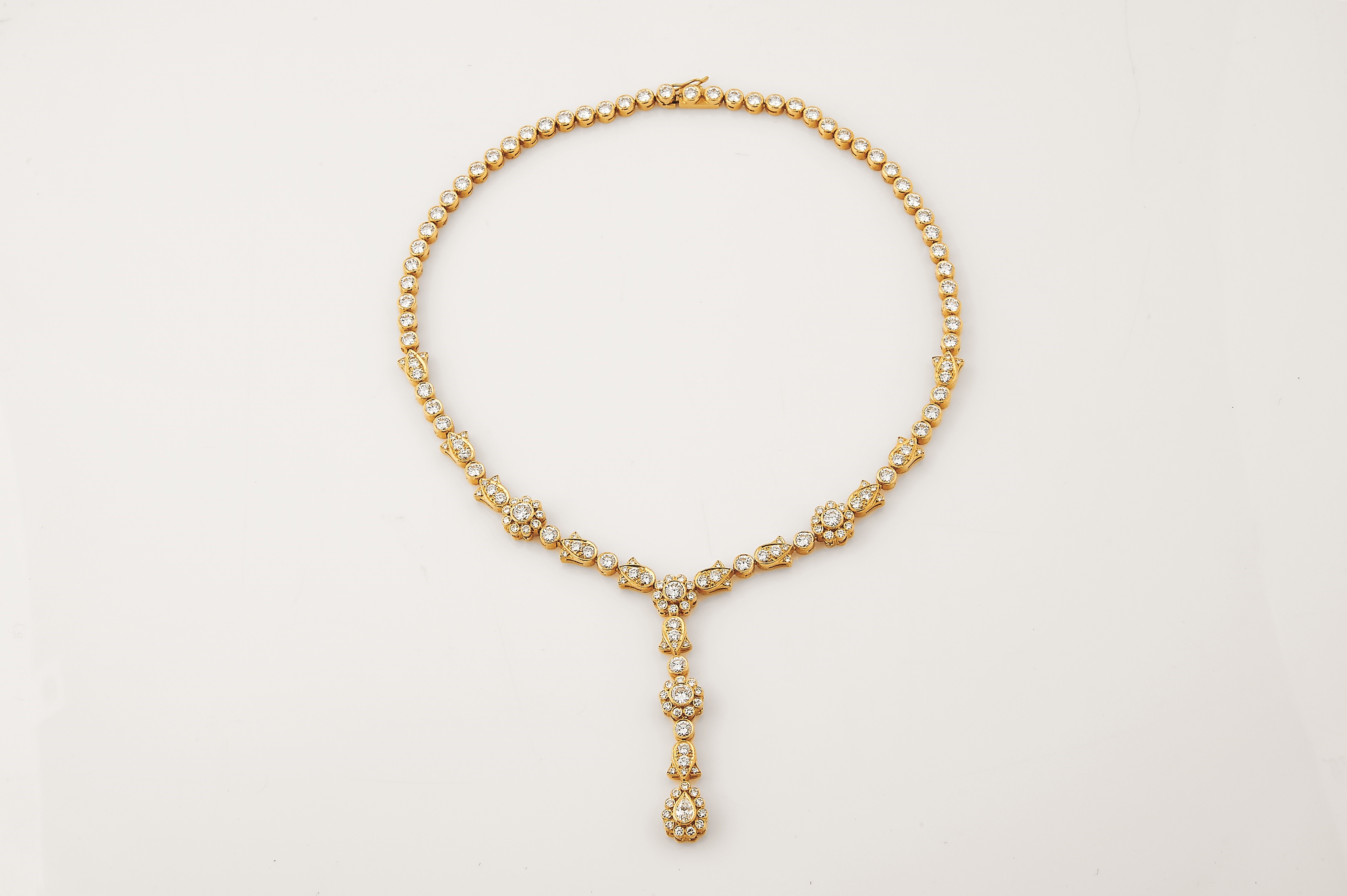 - cravejado com 171 diamantes em talhe de brilhante com o peso aproximado de 22,80 ct., contraste do Porto (pós-1985), pendente amovível
