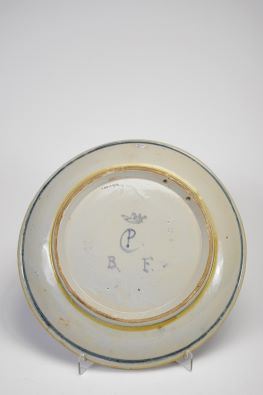 - decoração policromada "Vénus, Cupido, cão e perdiz", aba com decoração policromada "Putti", medalhão com busto encimado por coroa e armas de Saxe e da Prússia"