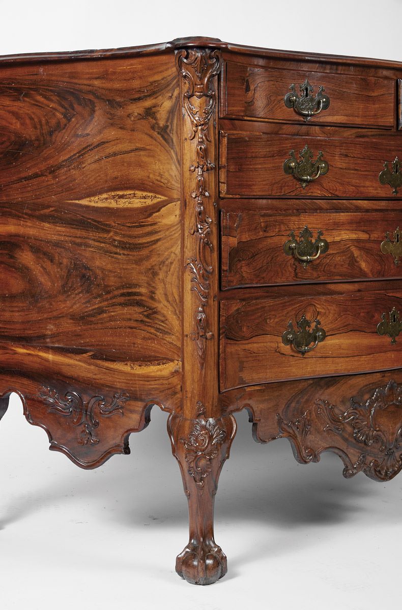 - saiais recortados, pés de «garra e bola», ferragens em bronze