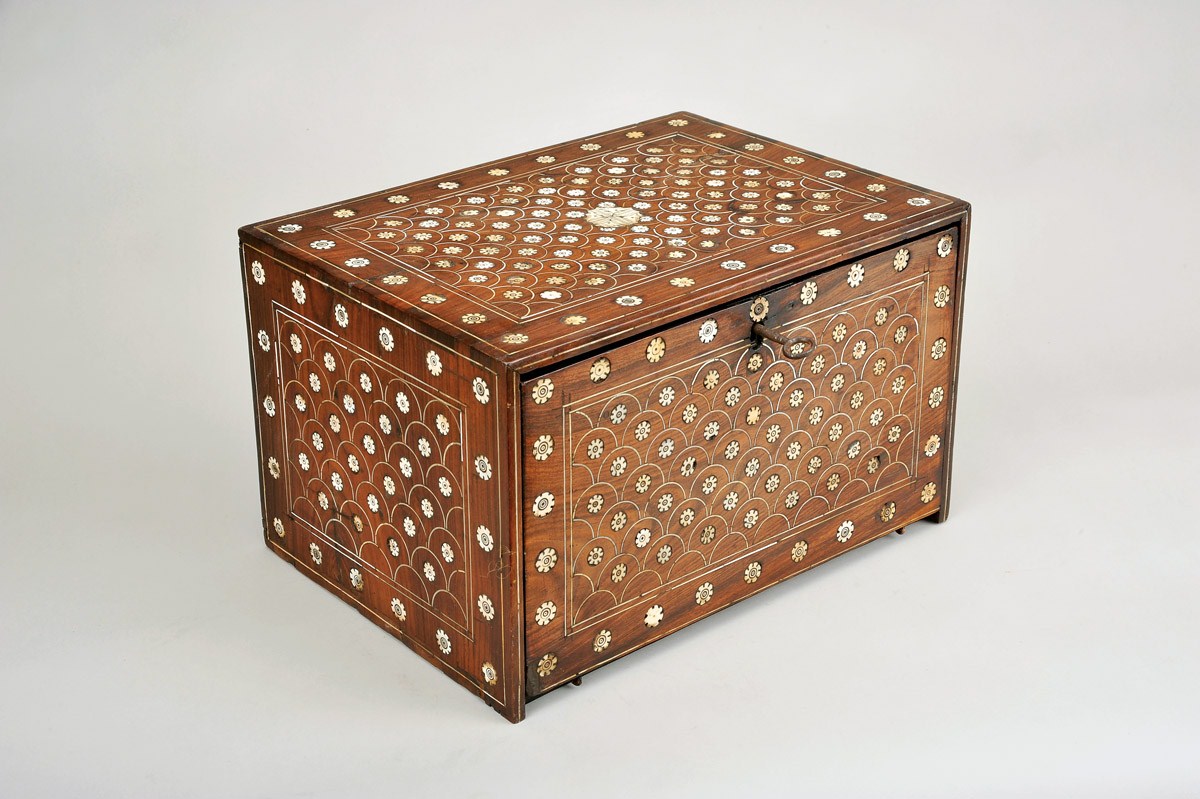 - exemplar semelhante integrou a exposição "A Missionação e a Arte", encontrando-se representado no respectivo catálogo: CASTILHO, Manuel - "Missionação - A Rota de Lisboa e a Rota de Acapulco", p. 26, nº 8.◙A Cabinet,◙Lusíada, sissoo,◙ivory inlaid "Scales