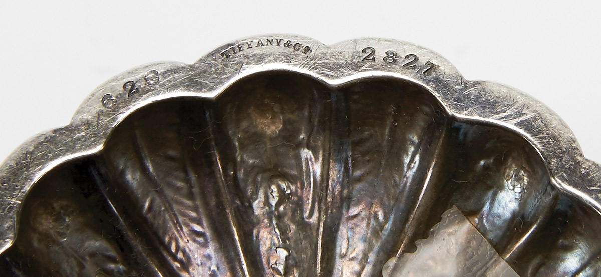 - decoração gomada e relevada, bordo e pega ondulada, marcada TIFFANY & Cº.