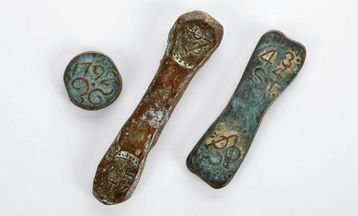 - Moeda e duas barras com símbolo da Companhia das Índias Orientais holandesa - VOC