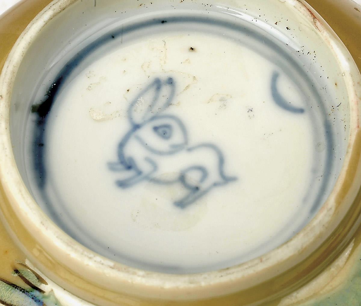 - decoração "Família Verde" policromada "Flores" sobre fundo "Café-au-lait"