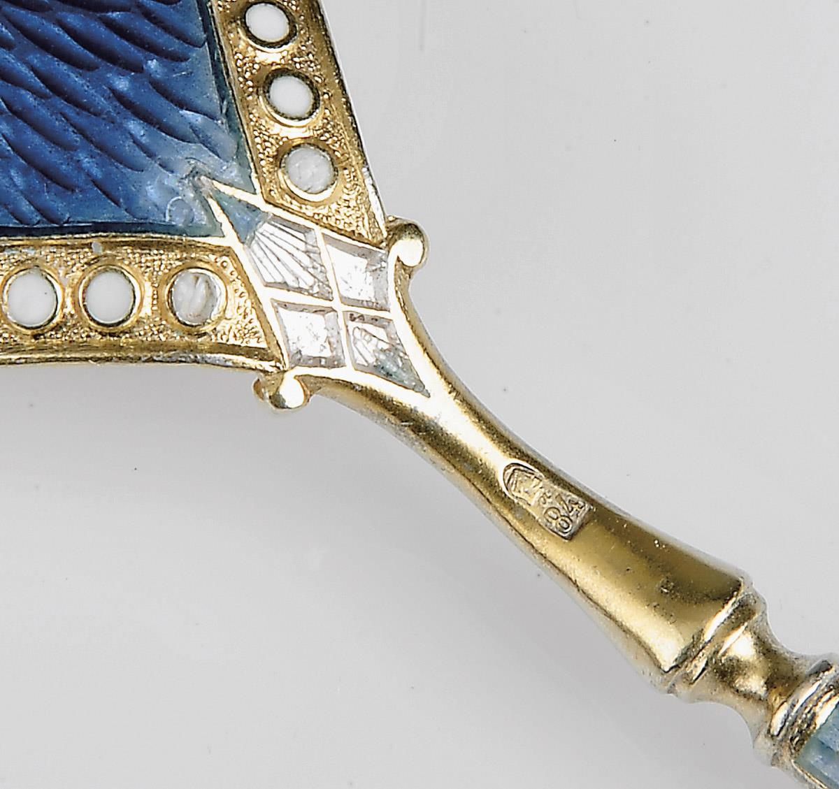 - decoração com esmaltes policromados, marca de garantia de 84 zlotnicks (1908-1926)