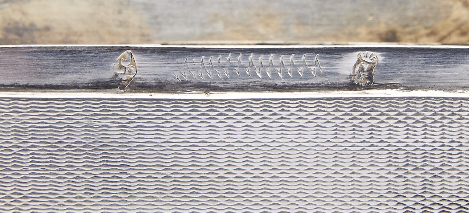 - decoração guilhochada com reserva gravada "Paisagem com casario"