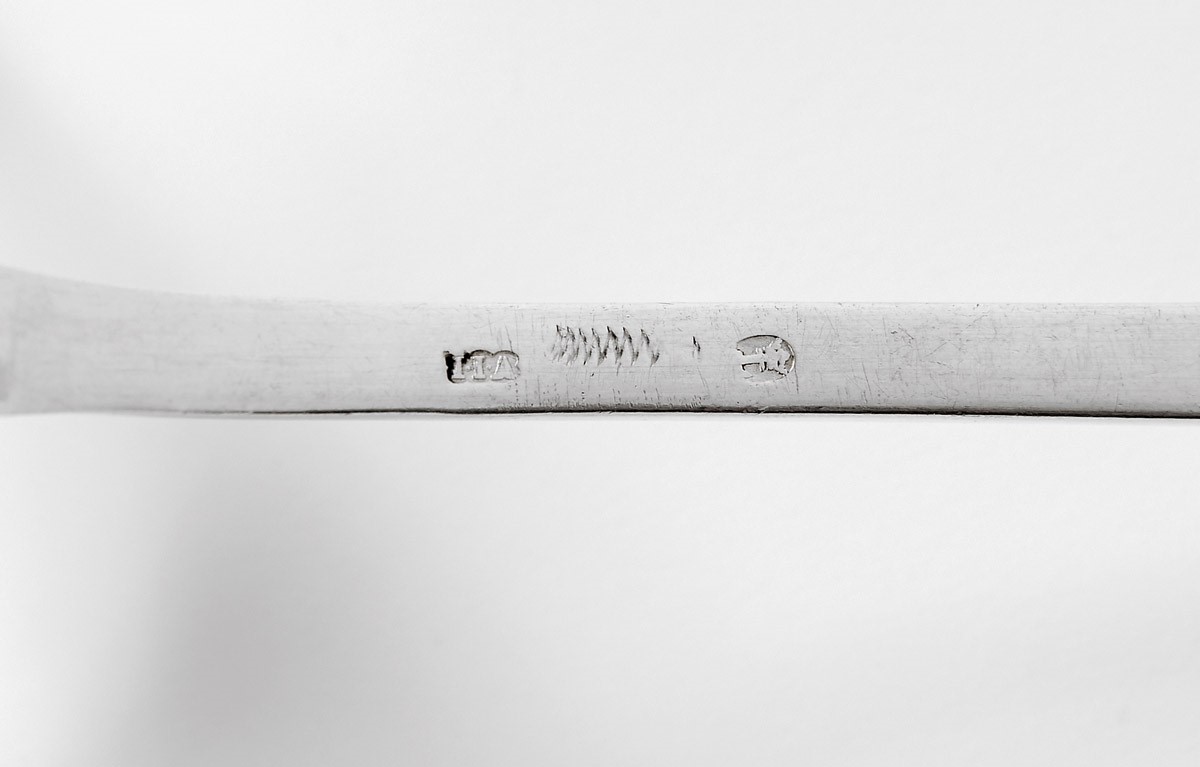- composto por concha de sopa, colher de arroz, trinchante de carne, colheres de sopa e talheres de resto, marcas de ensaiadores de Lisboa, marca de ourives de António Firmo da Costa (1793-1824), de José Joaquim de Abreu (1796-1822), de José Maria (1720-1804), de José Ladislau da Rocha Santos (1810-1822) e de António Venâncio Quaresma (1782-1822)