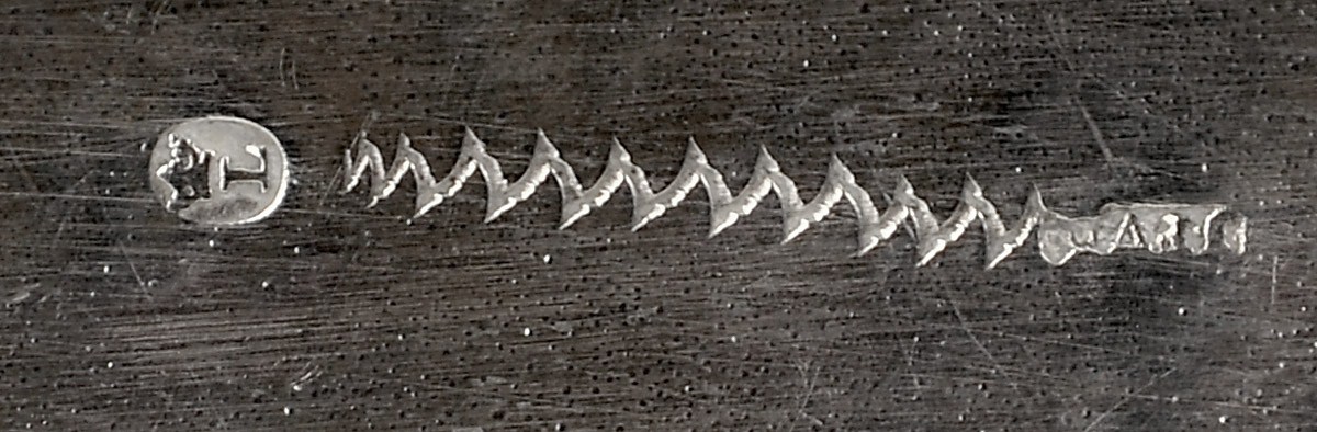 - decoração relevada, pega em ébano, marca de ensaiador de Lisboa (1810-1822), marca de ourives de Joaquim Prudêncio Vital Diniz (1812-1843)