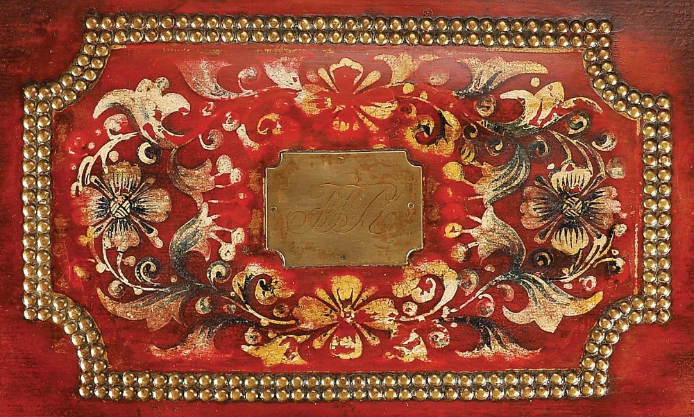 - cânfora revestida a couro vermelho pintado