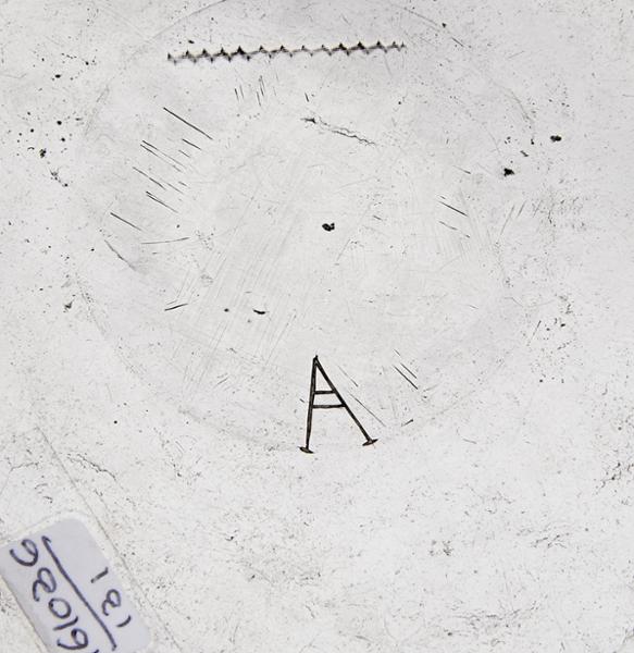 - marca de posse "A", marca de ensaiador de Lisboa (1720-1750), marca de ourives de O/MN (1720-1750)
