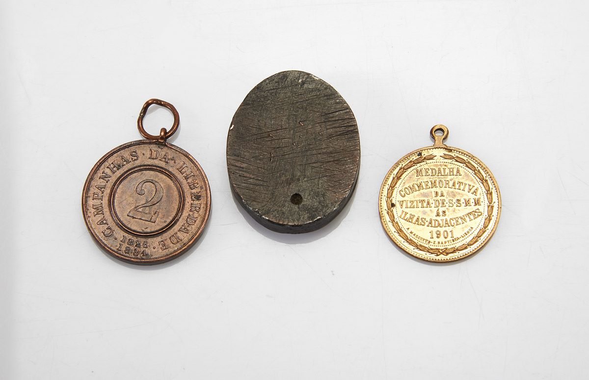 - decorações relevadas: 1 - "D. Pedro IV - D. Maria II - Campanhas da Liberdade - 1826-1834"; 2 - "D. Carlos I e D. Amélia - Reis de Portugal - Medalha Commemorativa da Vizita de S.S.M.M. ás Ilhas Adjacentes - 1901"; 3 - "Ministerio da Fazenda - Direcção Geral da Thesouraria"