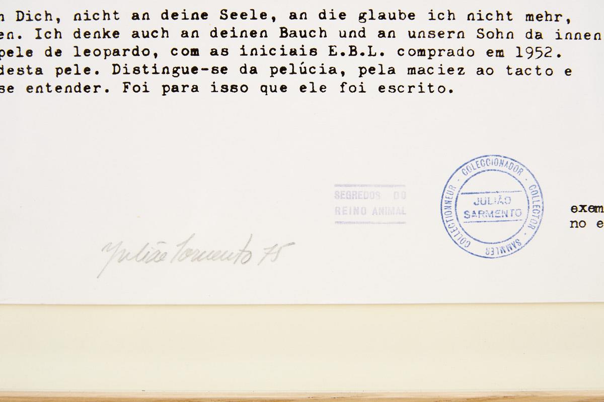 - reproduzida no catálogo da exposição "Julião Sarmento: Noites Brancas - Retrospectiva", realizada no Museu de Arte Contemporânea de Serralves, Porto, 23 de Novembro de 2012 a 3 de Março de 2013. Porto: Fundação de Serralves / Hatje Cantz, 2013, pp. 42 e 356.