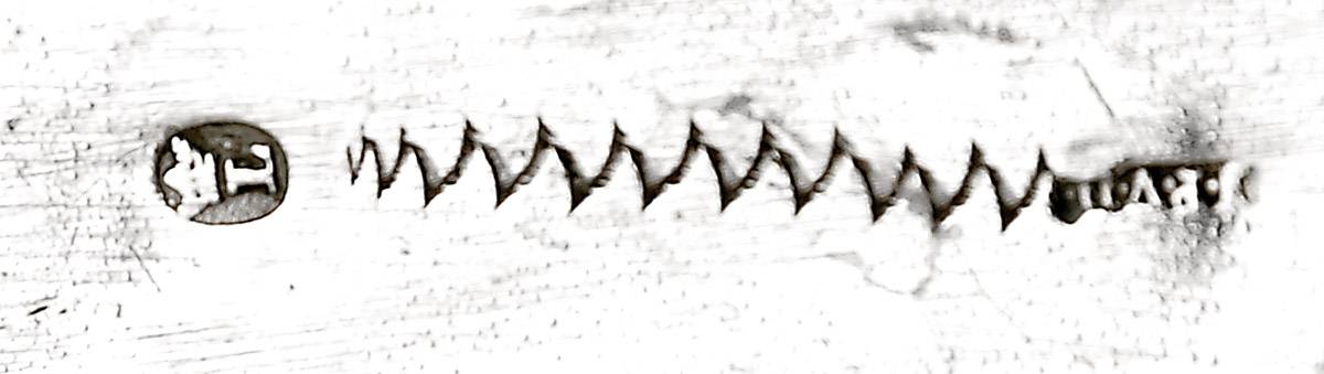 - decoração relevada "Flores", pega em ébano, marca de ensaiador de Lisboa (1810-1822), marca de ourives de Joaquim Prudêncio Vital Dinis (1812-1843)