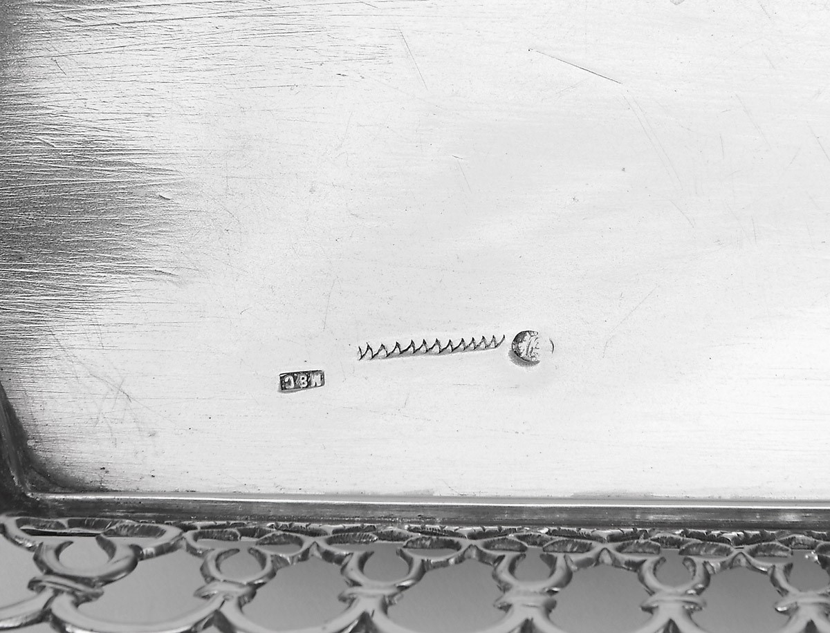 - decoração vazada, pés de garra, marcas de ensaiador de Lisboa (1870-1879), marca de ourives M&C (1870-1879)