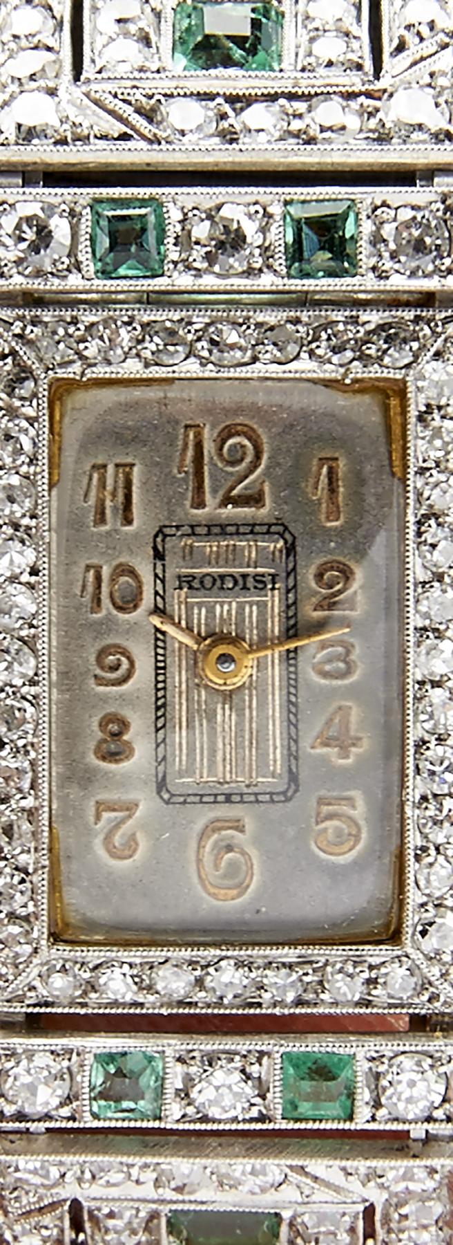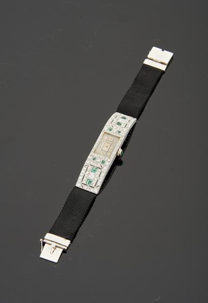 - cravejada com 8 esmeraldas e 108 diamantes em talhe antigo de brilhante com o peso aproximado de 2,50 ct.