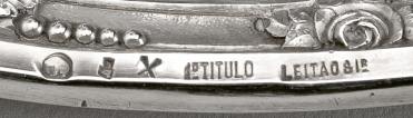 - decoração relevada, contraste Javali de Lisboa (1887-1937), marca de ourives LEITÃO & IRMÃO