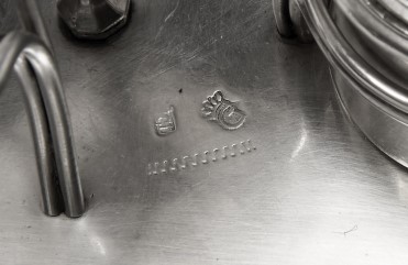 - composta por tinteiro, areeiro, caixa para lacre com campainha, castiçal e porta-penas, gravação com monograma J.M.B., marca de ensaiador de Guimarães (1801-1819/20), marca de ourives de José da Costa Lima
