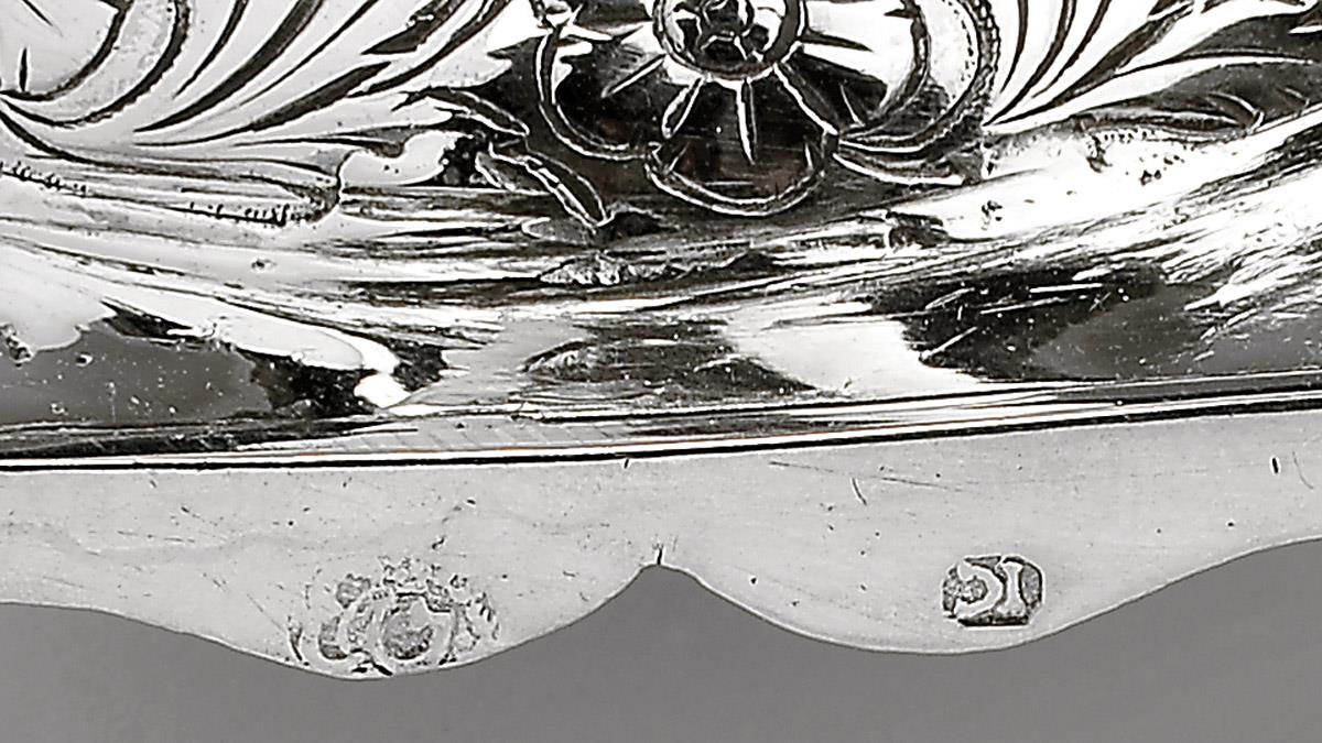 - decoração gravada "Flores", marca de ensaiador de Guimarães, marca de ourives de IC
