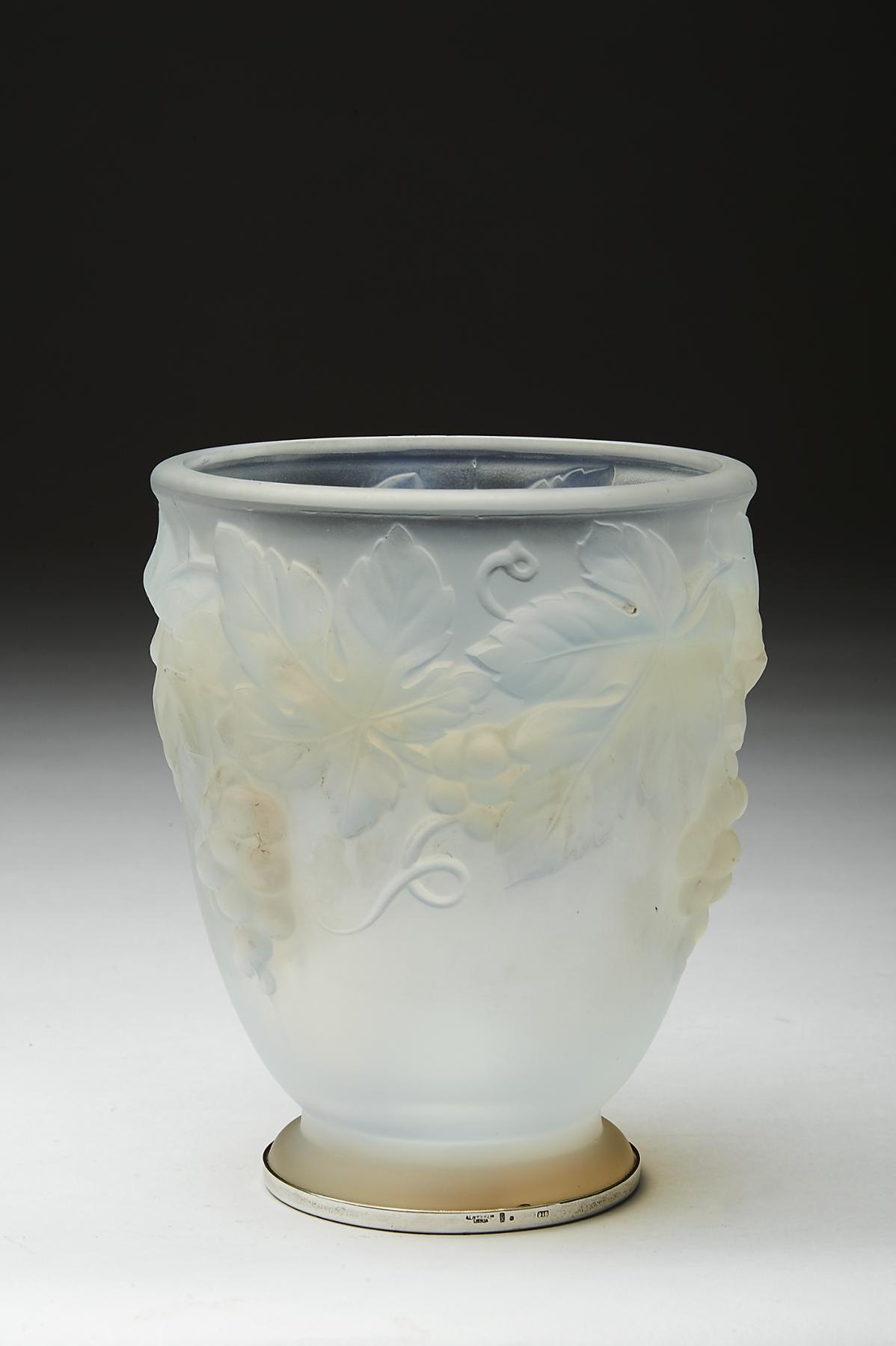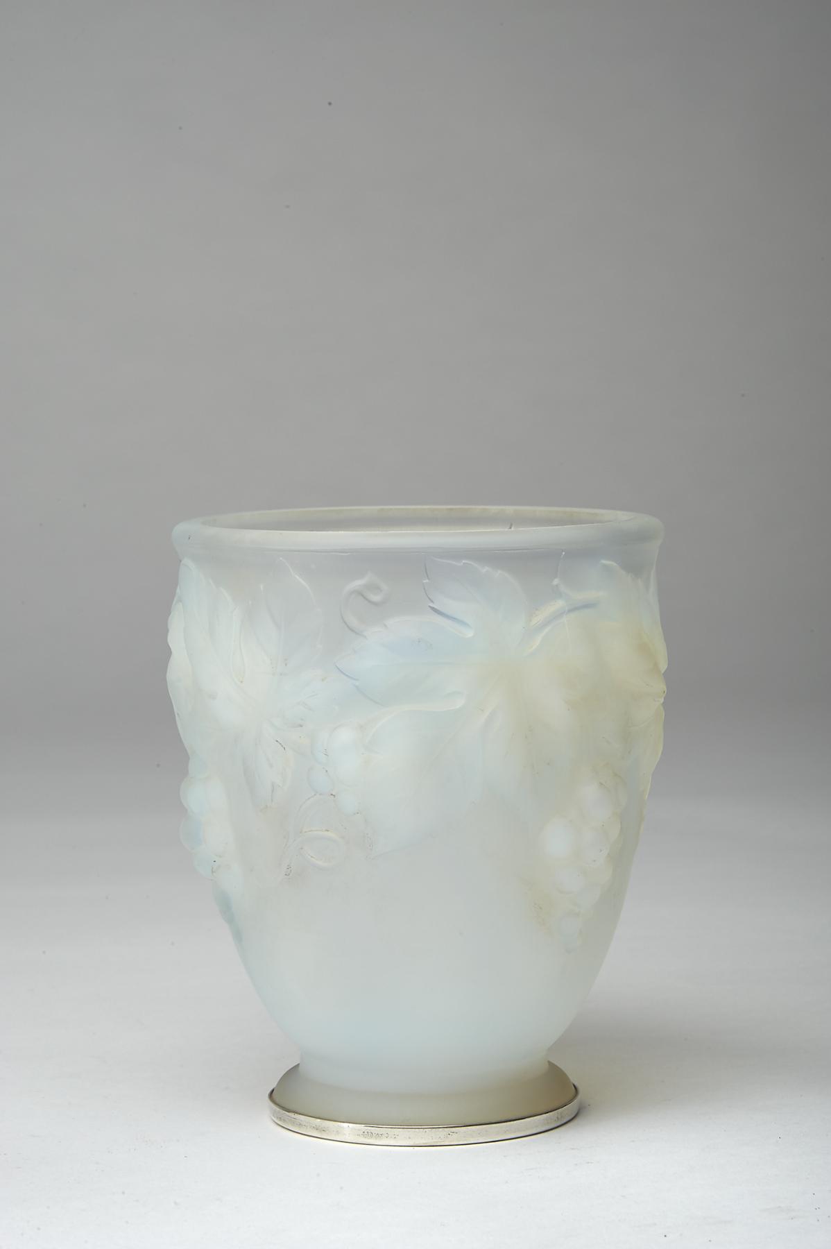 - decoração moldada e parcialmente fosca "Cachos de uvas e parras", aro da base em prata de 916/1000