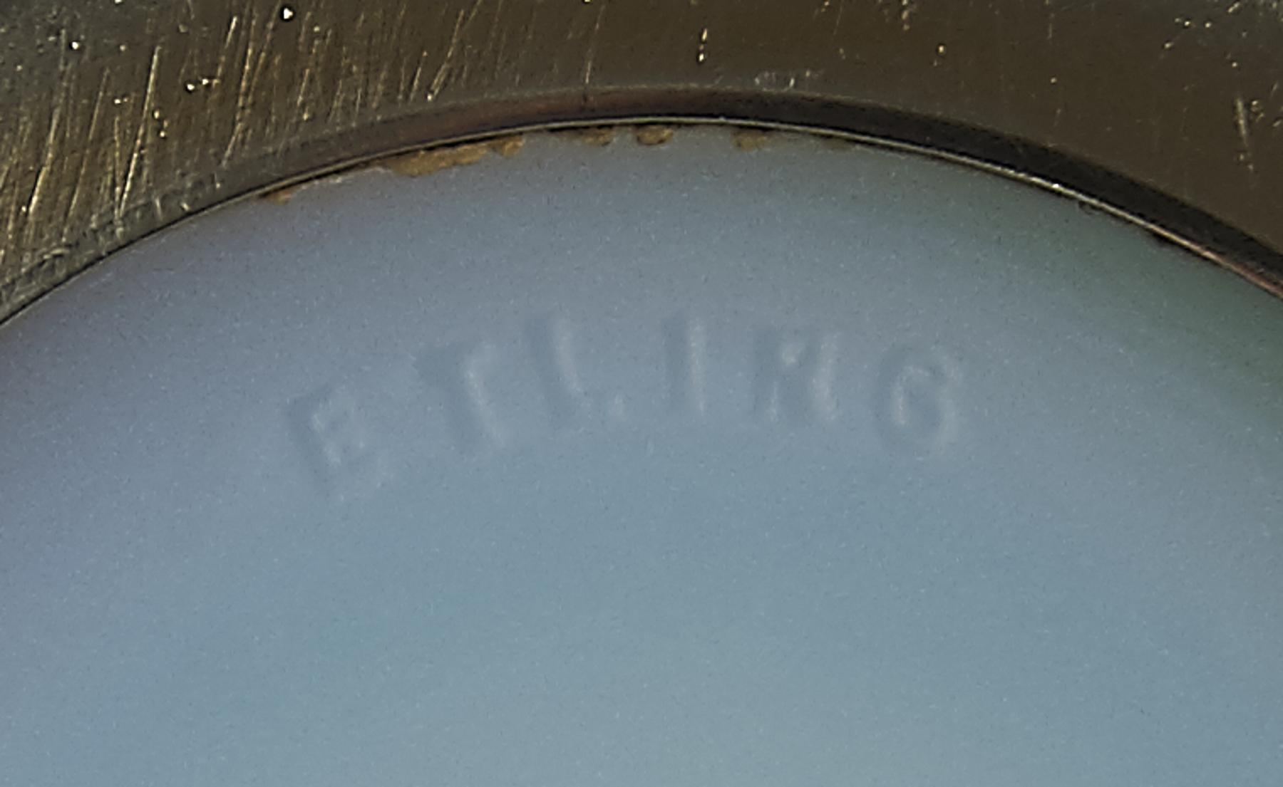 - marcada ETLING - FRANCE, contraste Águia de Lisboa (1938-1984), marca de ourives de Augusto Luís de Sousa Lda. (1930), marca da ourivesaria A. L. SOUZA, Lda - Lisboa