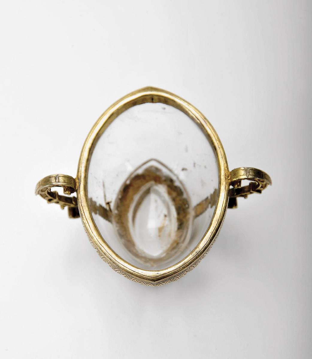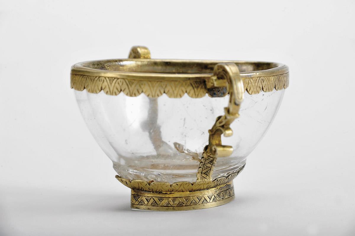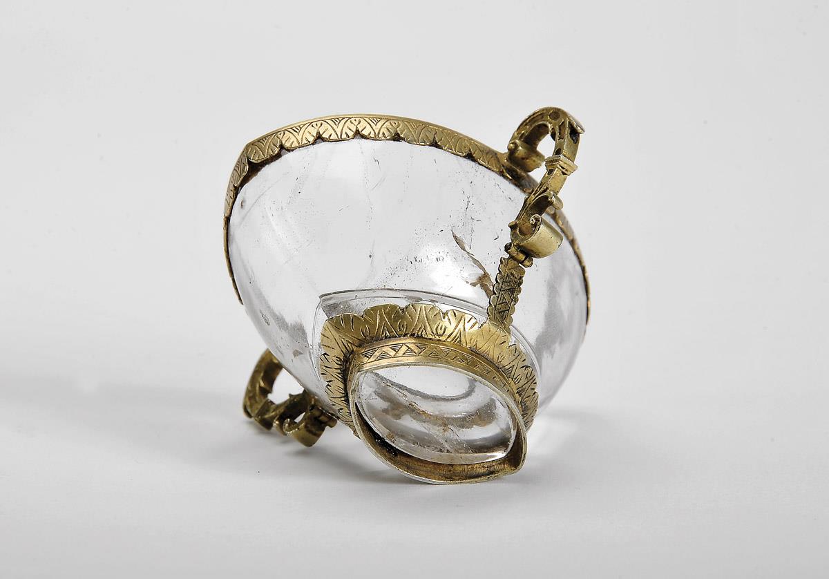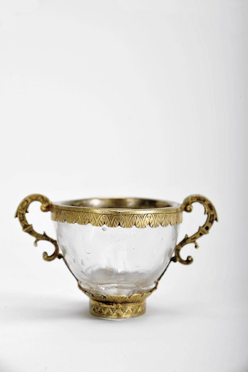 - montagem em prata dourada de baixo teor com decoração gravada, saleiro provavelmente produzido em Goa ou outro local do mundo português do Índico, aplicações colocadas possivelmente em Lisboa
