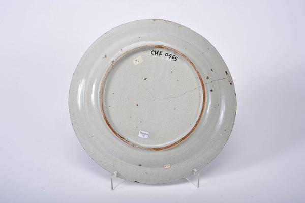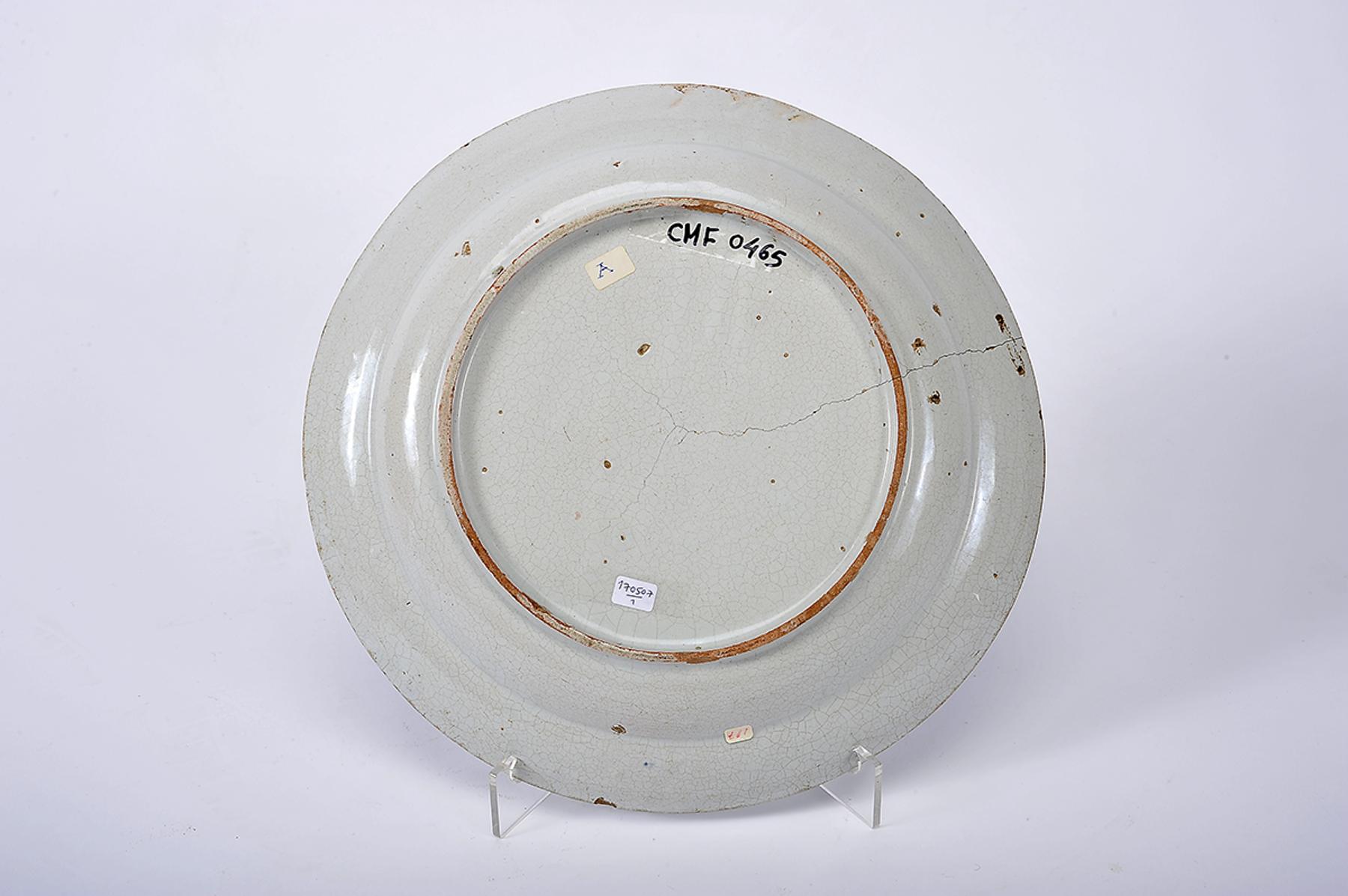 - grande cabelo, esbeiçadela, pequenas faltas no vidrado, verso com sinais de dois «gatos»