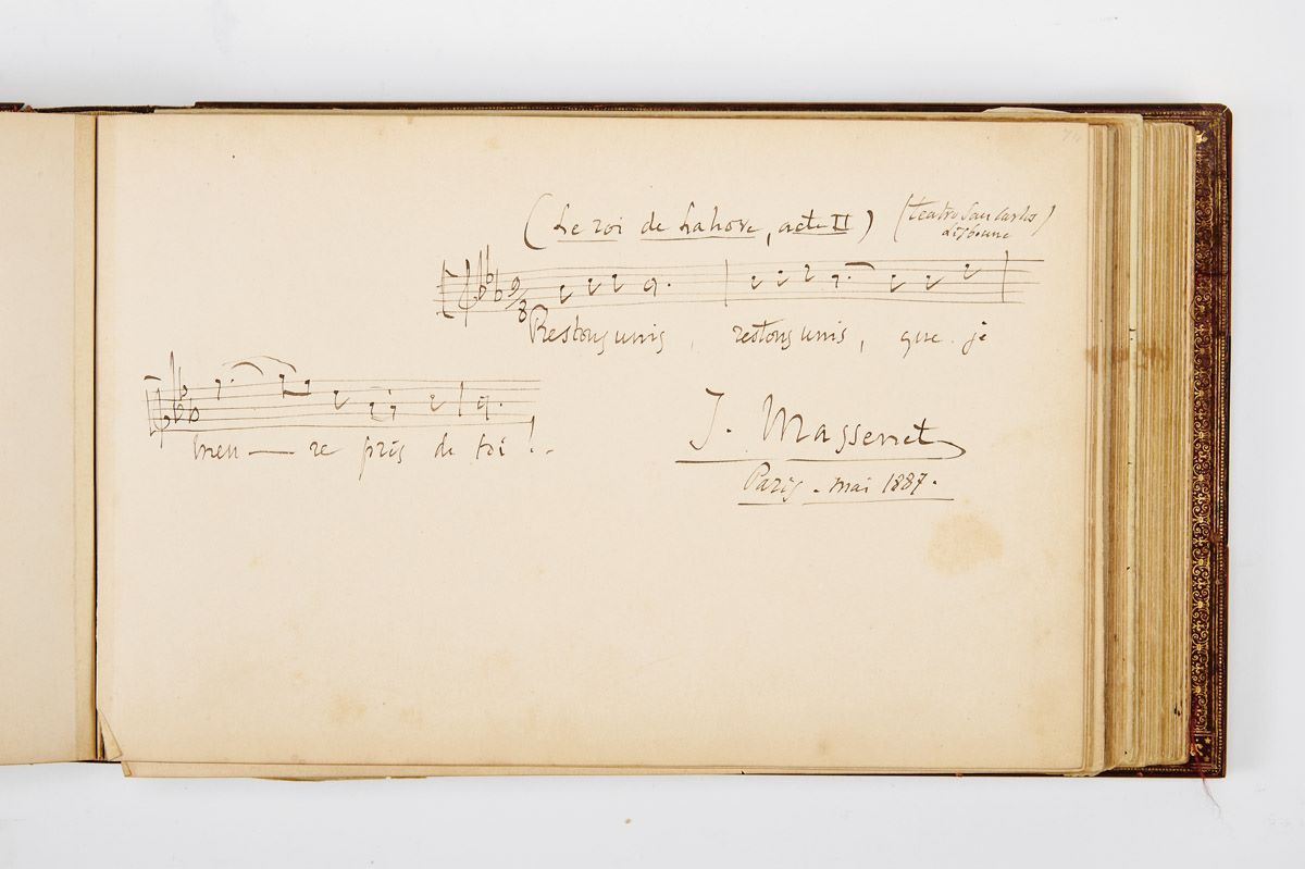 Contém um vasto conjunto de autógrafos, poemas, textos, desenhos e pautas musicais, da autoria de portugueses e estrangeiros, nomeadamente, do Rei D. Manuel II (Pena, 26/07/1909), José Malhoa (desenho-costume do Porto, 1885), Ramalho Ortigão (conto), Rafael Bordalo Pinheiro (ilustração a tinta da China do conto de Ramalho Ortigão, Lisboa 23 de Junho de 1881), poemas, entre outros, de François Coppée, Durange, Anatolé Harzé, Pinheiro Chagas, Thomaz Ribas Alberto Braga; Eça de Queiroz (texto, 25 de Dezembro de 1884); trecho musical de J. Massenet, poema de Durange, conto de Ramalho Ortigão