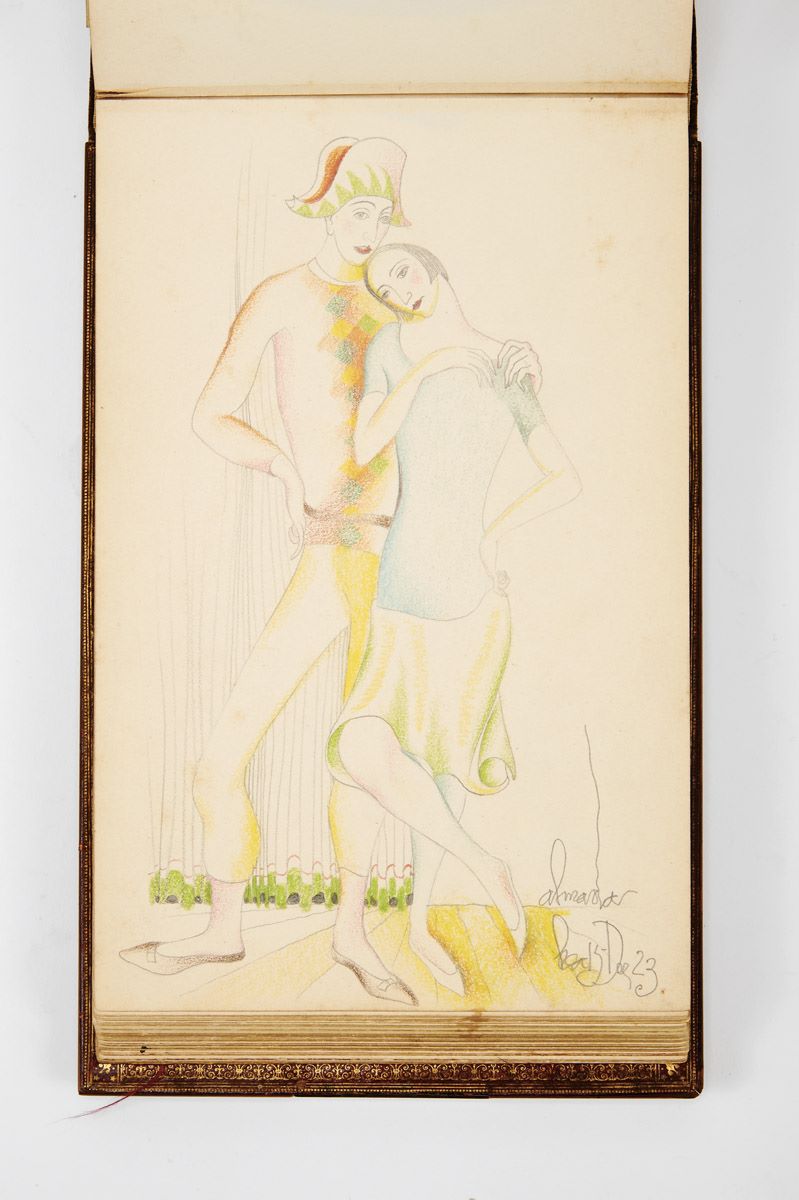 - composto por escritos autógrafos de diversas personalidades ligadas à cultura e à literatura, portuguesas e estrangeiras, e por desenhos originais produzidos por diversas artistas de renome como Rafael Bordalo Pinheiro, José Malhoa, João Vaz, C. de Almedina, Rei D. Carlos (enquanto Duque de Bragança), José Júlio de Sousa Pinto, António Carneiro, Carlos Reis, Almada Negreiros, Columbano e outros, capa original em madeira exótica com aplicações em prata relevada com inscrição AMÉLIA