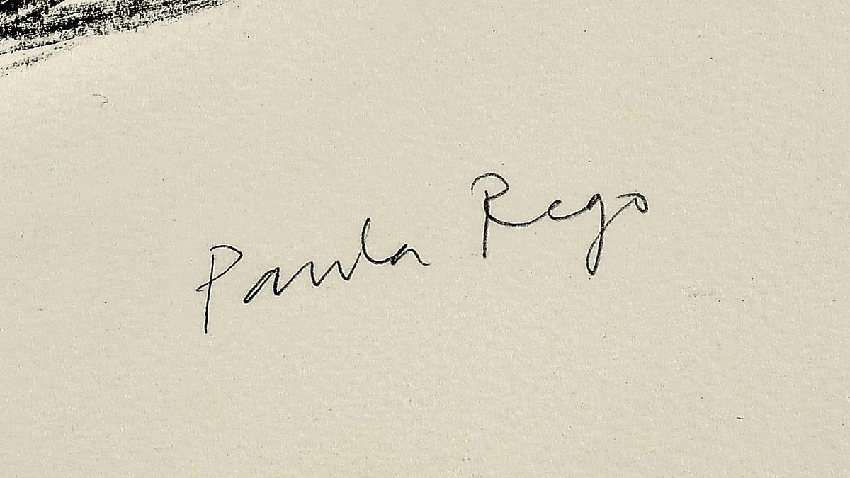 - acompanhada por certificado de autenticidade emitido por The Curwen Studio, datando a obra de 2001.◙Estampa nº 5 da série "Jane Eyre - The Guardians", catalogada e reproduzida em ROSENTHAL, T.G. - "Paula Rego - obra gráfica completa". Lisboa: Cavalo de Fe