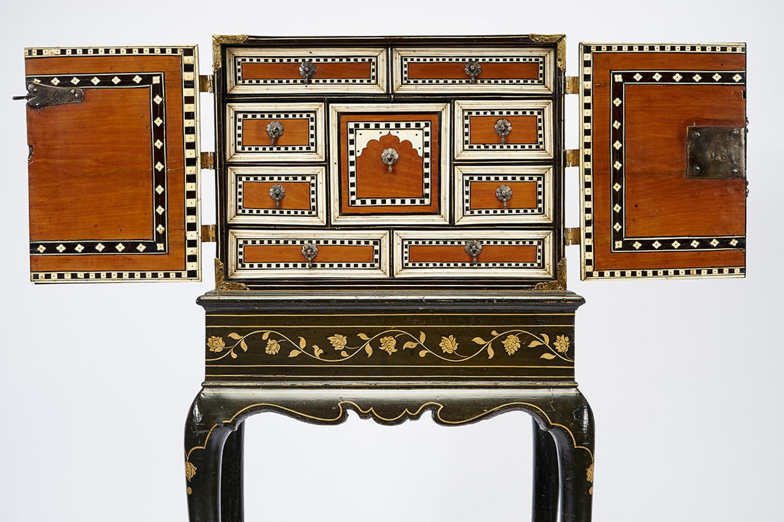 - sândalo, faixas embutidas em marchetaria de ébano e marfim "Flores e desenhos geométricos"