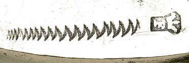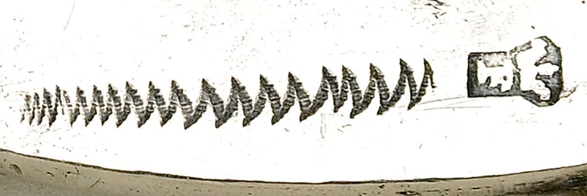 - bordo ondulado com decoração "Concheados", marca de ensaiador de Faro, marca de ourives ADP