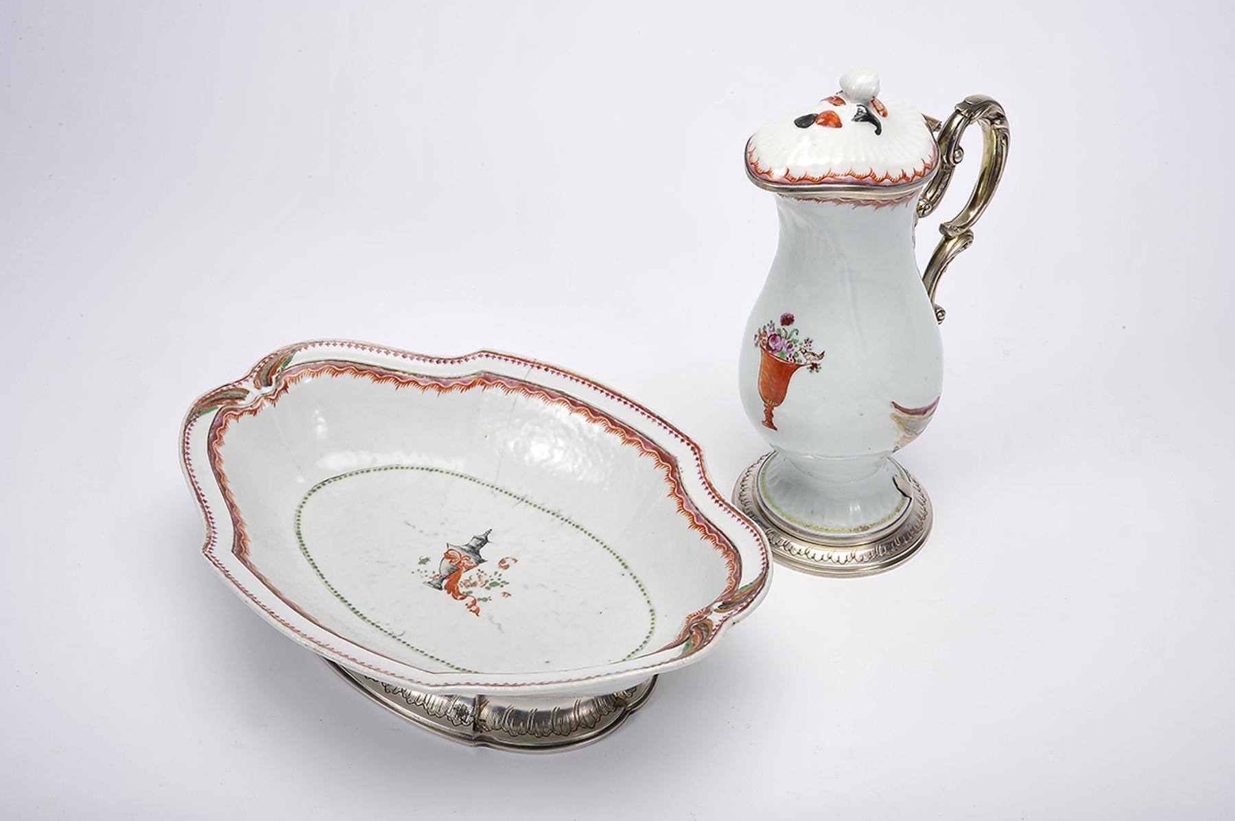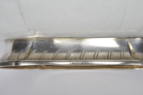 - cabelo no jarro e na bacia, falta da pega original do jarro, ambas com aplicações em prata de 916/1000