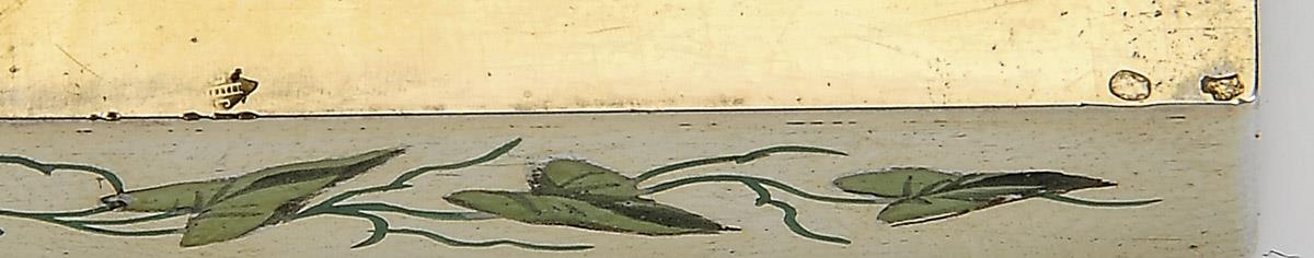 - decoração esmaltada e policromada "Figuras femininas" e inscrições "PORRAI ENCORE M´DE COLLETER?" e "VALLE", marca de garantia de Paris (1879), marca de ourives JG