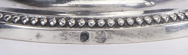 - marca de ensaiador de Lisboa (1804-1810), marca de ourives de António José da Mota (1804-1843), remarcada com "Cabeça de Velho"